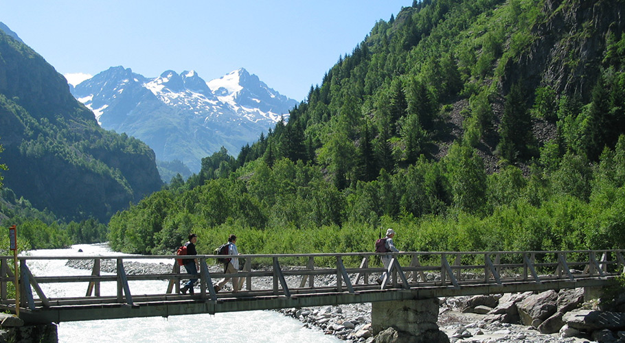 La Bérarde, hameau de « bérards » (bergers de moutons), au confluent du Vénéon et du torrent des Étançons est le point de départ pour les ascensions du massif (La Meije, la Barre des Ecrins, L'Ailefroide, Le Râteau, etc.).