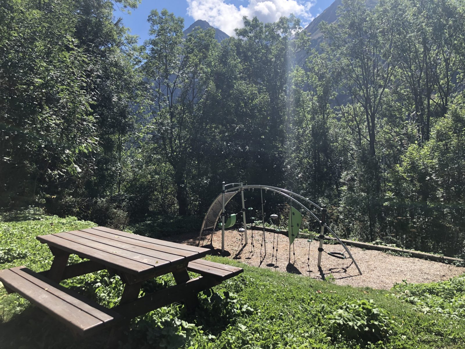 Elle dispose d'un espace extérieur avec des jeux pour enfants à partir de 8 ans.